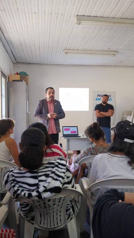 Nesta manhã, o associado enfermeiro Alan Guarato ministrou palestra no Cras Vera Cruz, abordando a saúde da mulher e o Outubro Rosa.