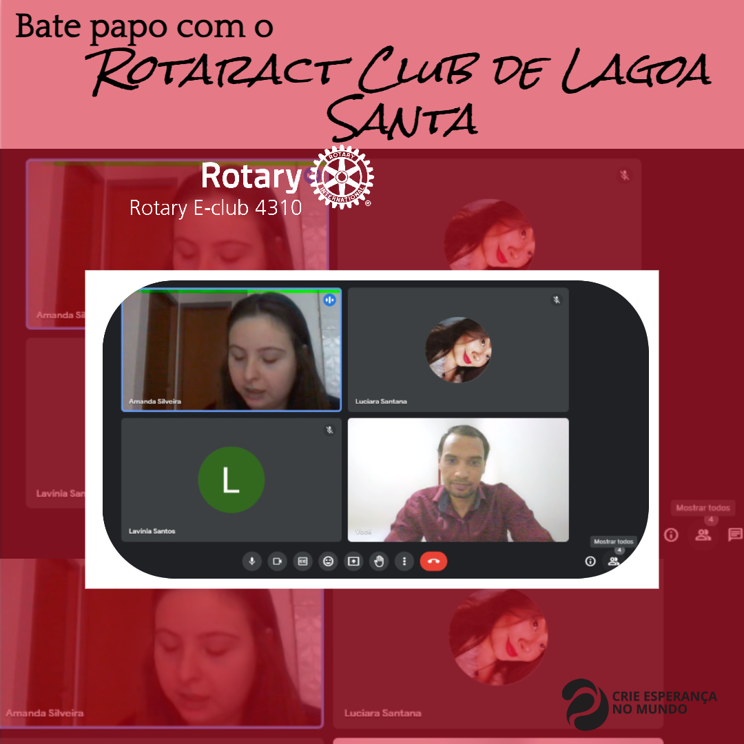 Visando networking, o Presidente Nunes (23-24) do Rotary E-Club 4310 teve um bate papo com a Presidente Amanda e associadas do Rotaract Club de Lagoa Santa do Distrito 4521, com o intuito de conhecer o clube e projetos.