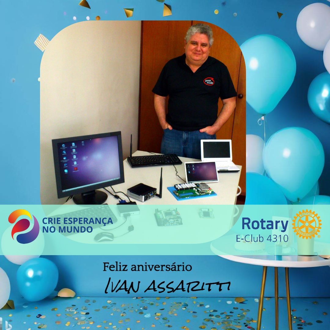 Hoje é o aniversário do nosso companheiro e Vice Presidente Ivan Assaritti. Desejamos a você toda a alegria e todo o sucesso do mundo! Sua trajetória em Rotary e fora dele nos inspira.