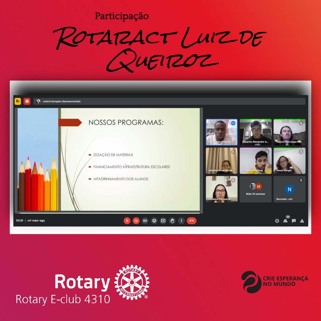 O Rotary E-Club 4310 marcou presença na Reunião do dia 27 de Agosto de 2023 do Rotaract Club Luiz de Queiroz, com a presença do Presidente Nunes.