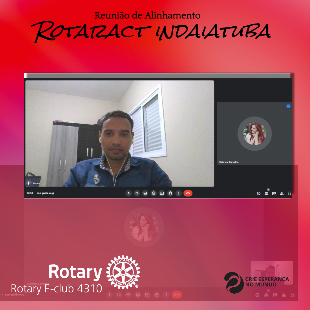 Visando networking, o Presidente Nunes (23-24) do Rotary E-Club 4310 teve um bate papo com a Presidente Gabi do Rotaract Club de Indaiatuba do Distrito 4621, com o intuito de fomentar projetos e parcerias.