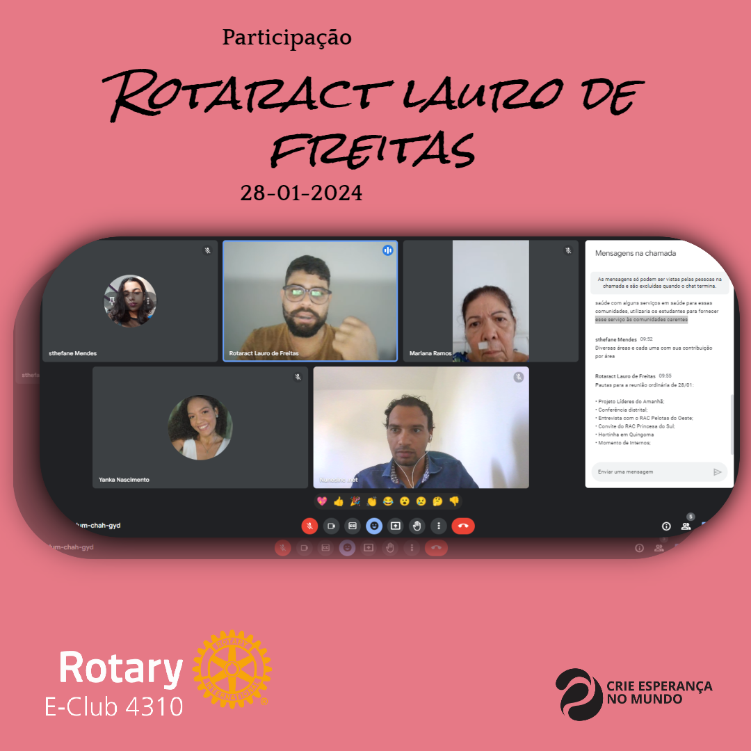 O Rotary E-Club 4310 marcou presença na Reunião do dia 28 de Janeiro de 2024 do Rotaract Club Lauro de Freitas, com a presença do Presidente Nunes.