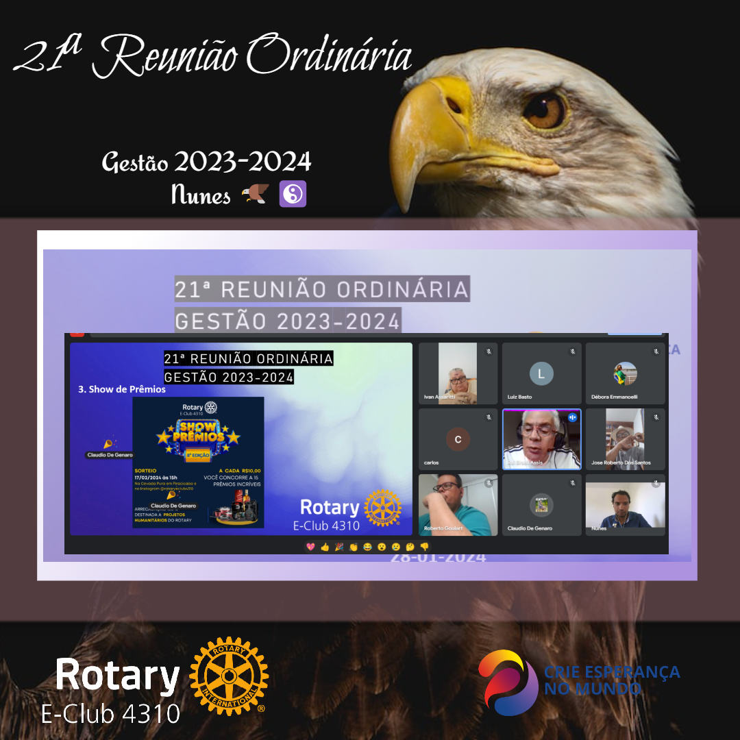 21ª Reunião Ordinária - Gestão 2023-2024 - Rotary E-Club 4310