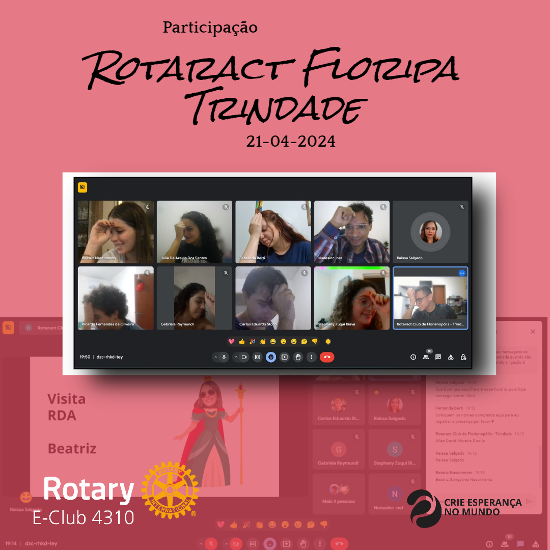 O Rotary E-Club 4310 marcou presença na Reunião do dia 21 de Abril de 2024 do Rotaract Club Florianópolis Trindade ( @rotaract.fpolistrindade ), com a presença do Presidente Nunes.