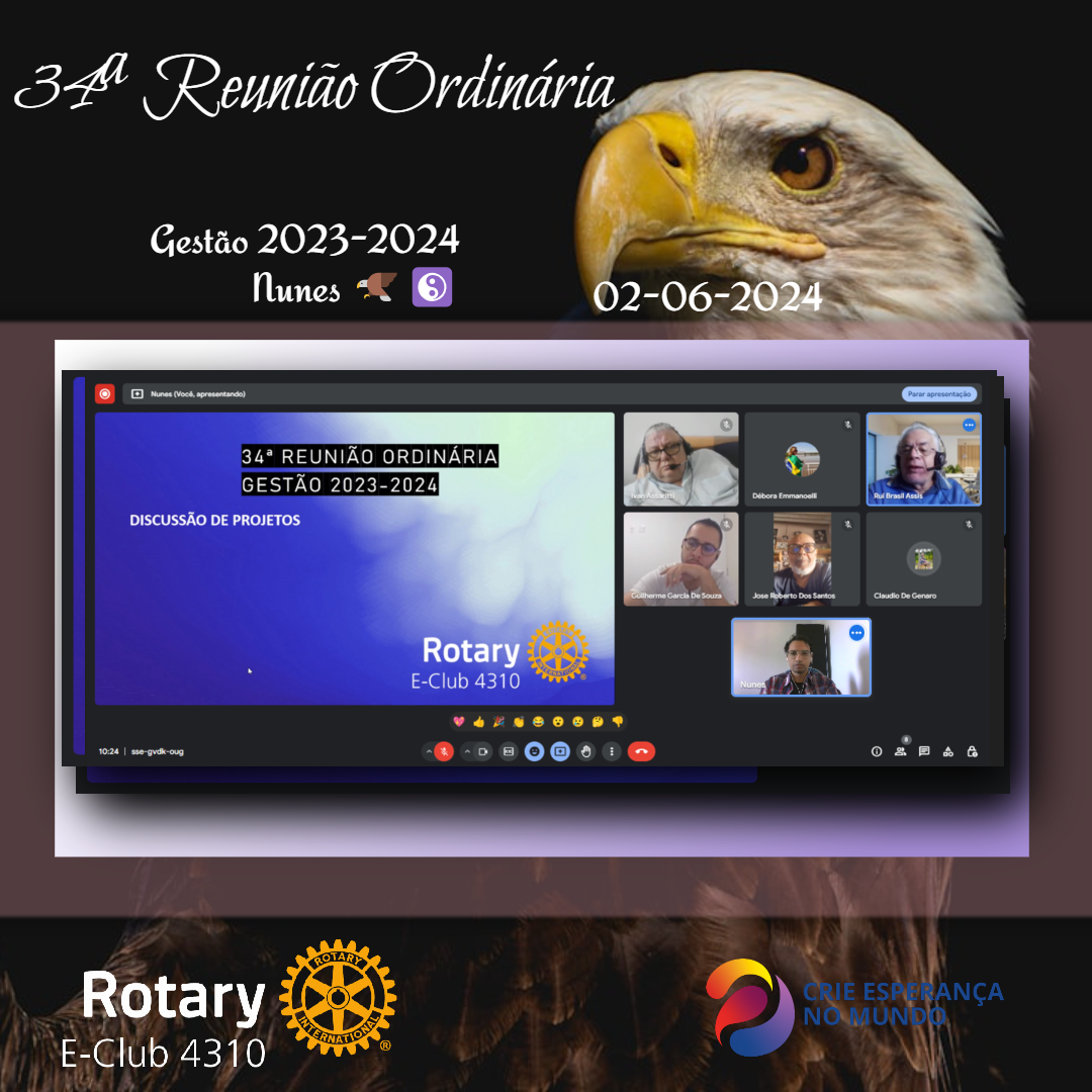34ª Reunião Ordinária - Gestão 2023-2024 - Rotary E-Club 4310