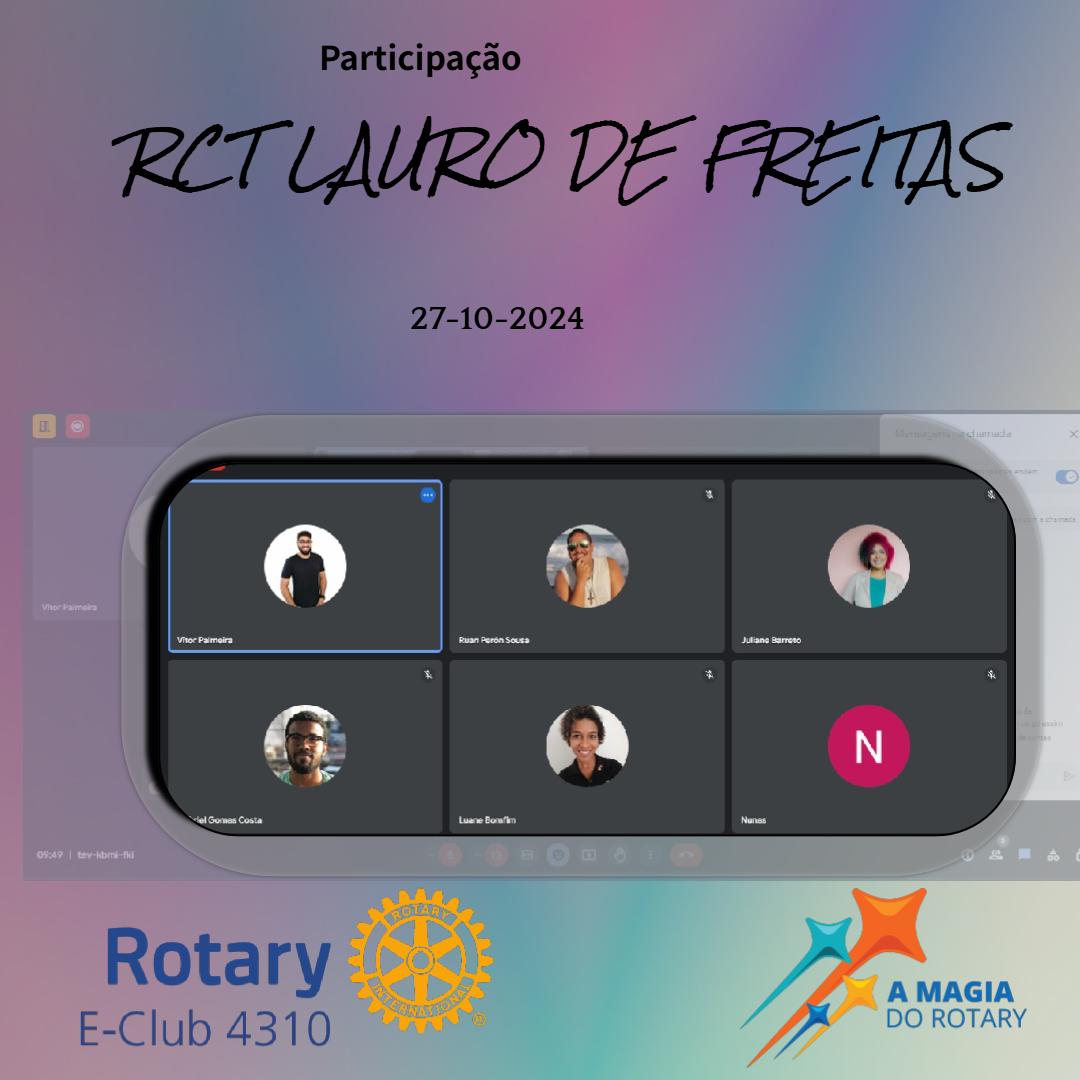 O Rotary E-Club 4310 marcou presença na Reunião do dia 27 de Outubro de 2024 do Rotaract Club Lauro de Freitas, com a presença do Vice-Presidente/IP Nunes.