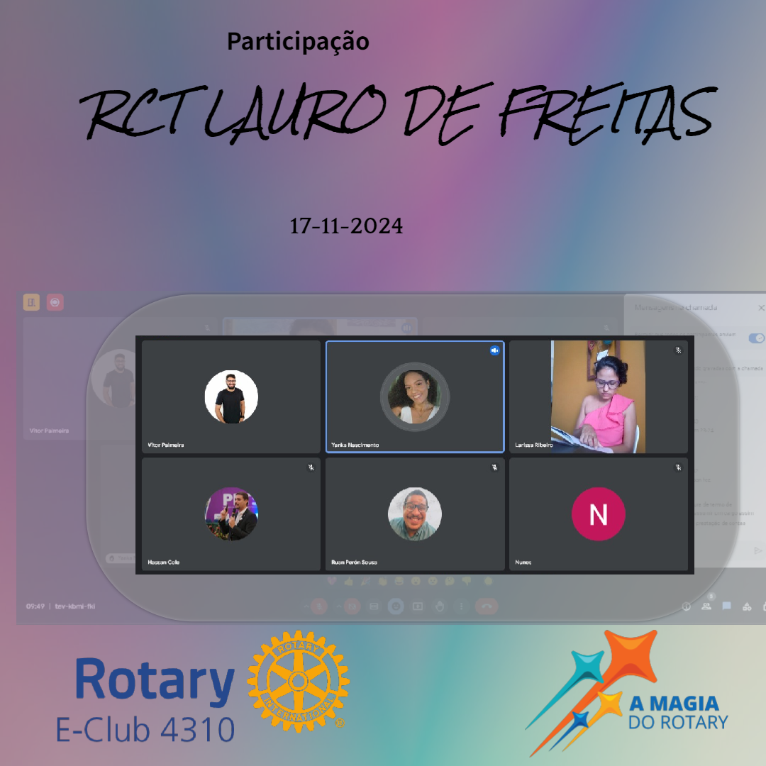 O Rotary E-Club 4310 marcou presença na Reunião do dia 17 de Novembro de 2024 do Rotaract Club Lauro de Freitas, com a presença do Vice-Presidente/IP Nunes.