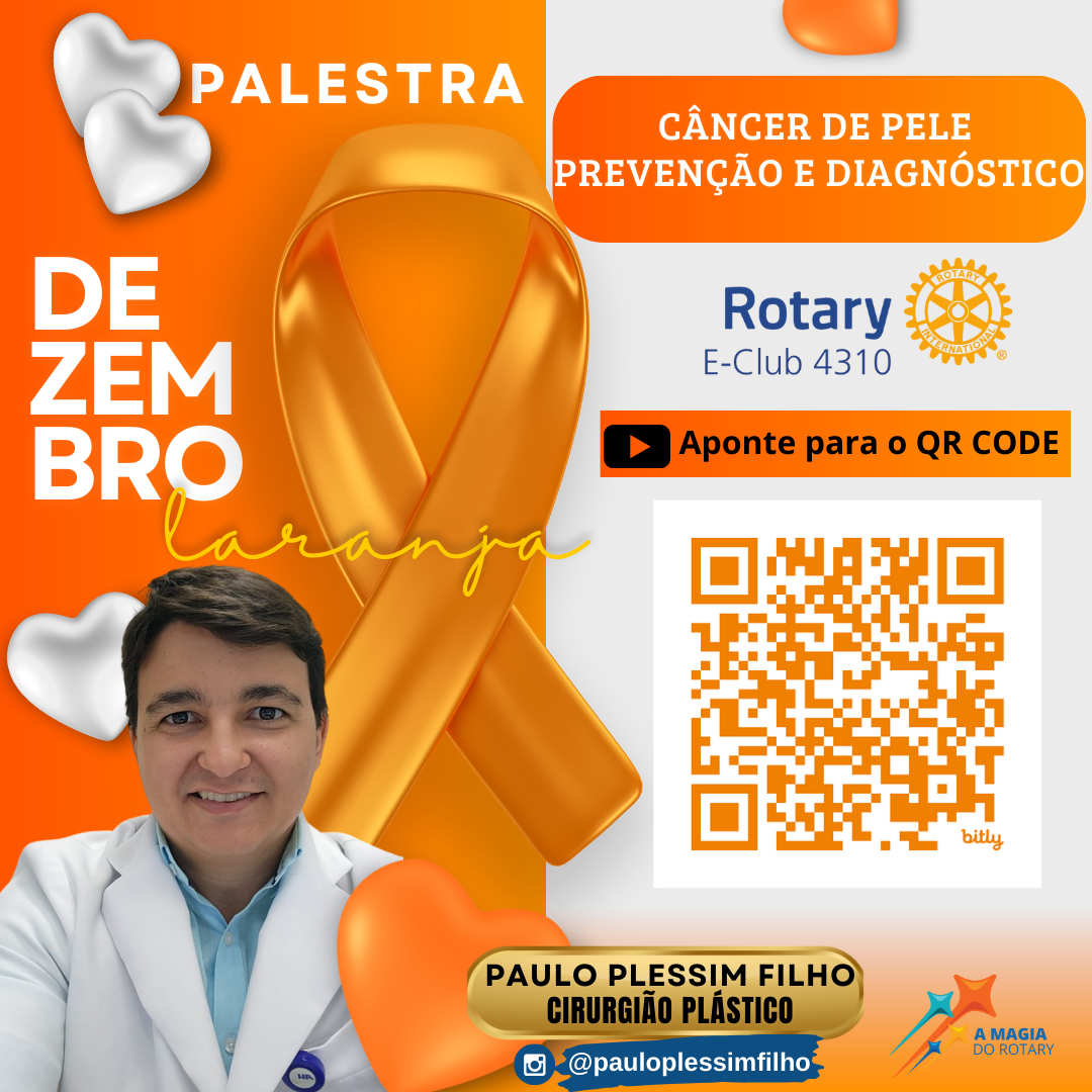 A palestra online sobre Câncer de Pele - Prevenção e Diagnóstico, promovida pelo Rotary E-Club 4310 como parte da campanha Dezembro Laranja! 🌟