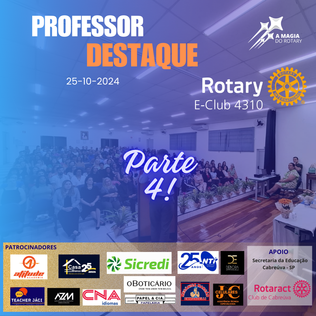 No dia 25 de Outubro de 2024, o Rotary E-Club 4310 promoveu o evento "Professor Destaque" no Auditório Mário Facioli, reunindo cerca de 300 pessoas para celebrar os educadores das escolas de Cabreúva.