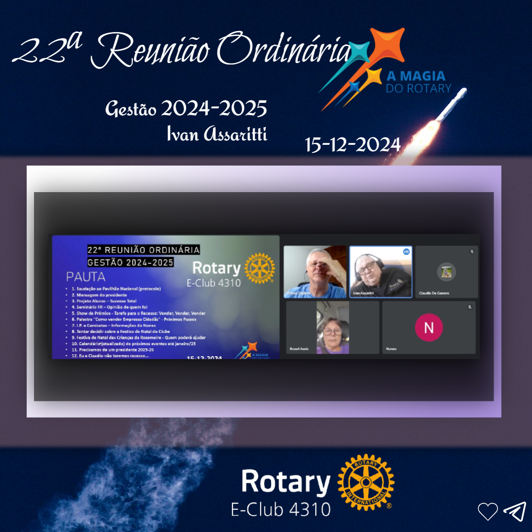 22ª Reunião Ordinária - Gestão 2024-2025 - Rotary E-Club 4310