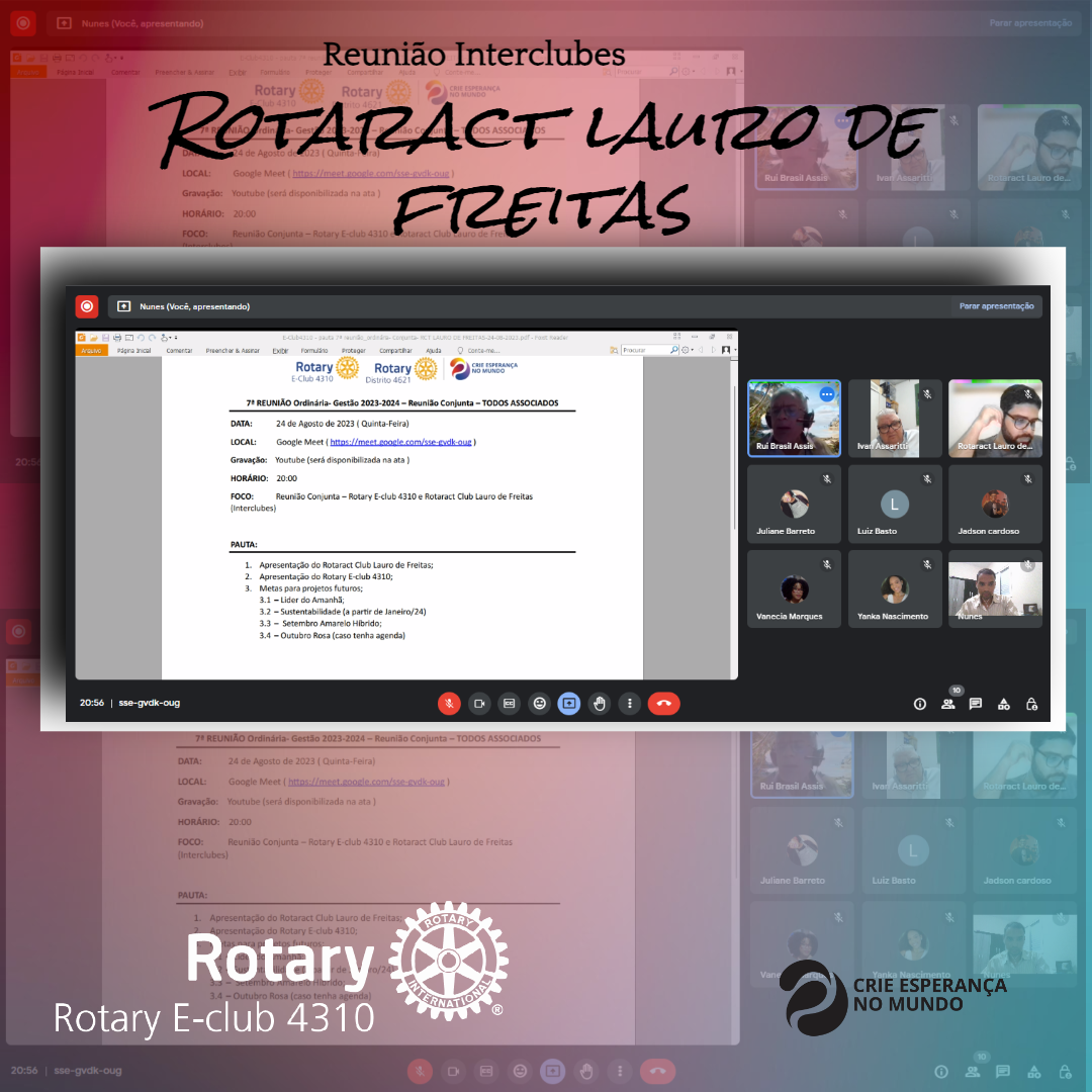 A ocasião foi marcada por uma reunião excepcionalmente produtiva, onde o Rotary E-Club 4310 uniu forças com o inspirador Rotaract Club Lauro de Freitas. Juntos, exploramos ideias, trocamos experiências e fortalecemos nossa rede de ação positiva.